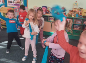 W trakcie roku szkolnego raz w tygodniu odbywały się zajęcia umuzykalniające, tzw. rytmika. zajęcia te prowadziła pani Weronika. Przedszkolaki bardzo chętnie uczestniczyły w zabawach muzyczno-ruchowych. Dzieci wykazują dużą muzykalność, poczucie rytmu, dobry słuch muzyczny. Pani Weronika była pod dużym wrażeniem, że...