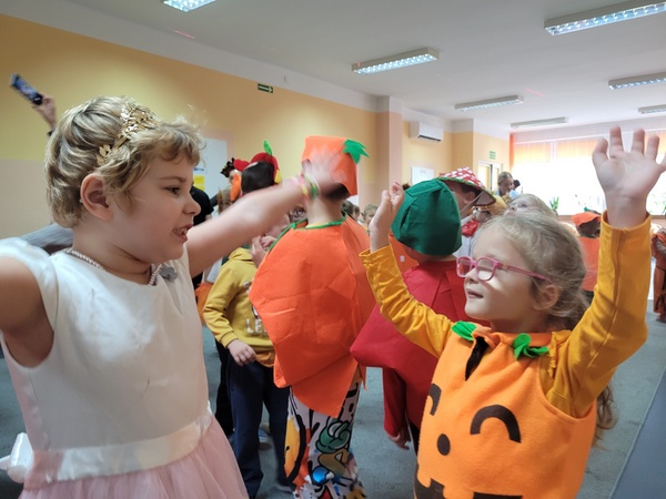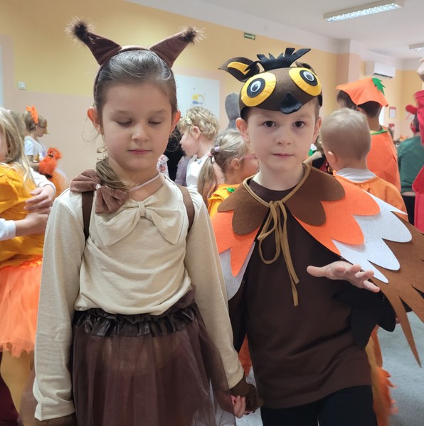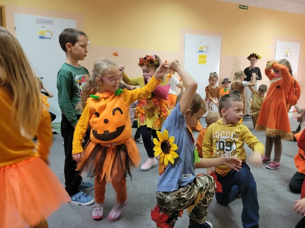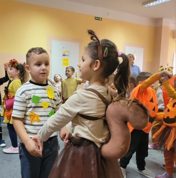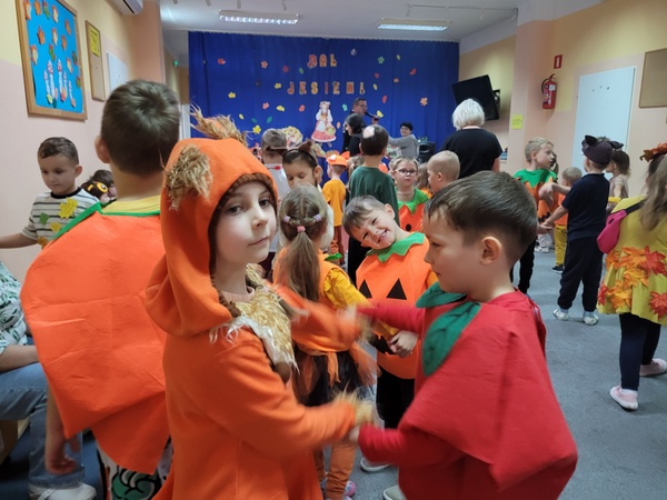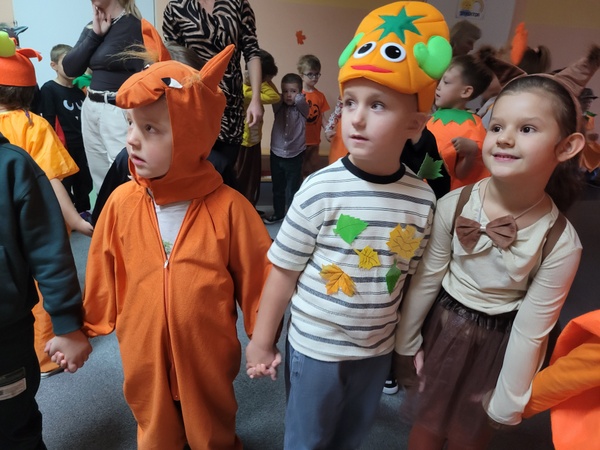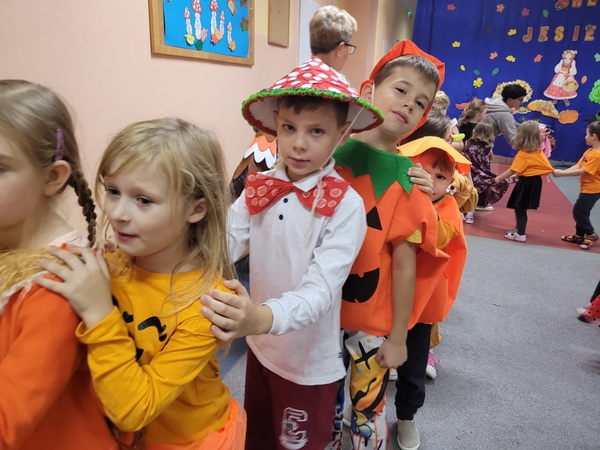 Bal jesieni w naszym przedszkolu to kolorowe i radosne wydarzenie, podczas którego królują jesienne barwy, dobra zabawa i wspaniały humor. Dzieci ubrane w piękne stroje tańczą przy popularnych piosenkach, tworzą kolorowe korowody i wężyki. Najważniejszym celem balu jest integrowanie dzieci, rozwijanie ich kreatywności oraz utrwalenie wiedzy o jesieni. Uśmiechnięte buzie są najlepszym dowodem na to, że bal był udany.