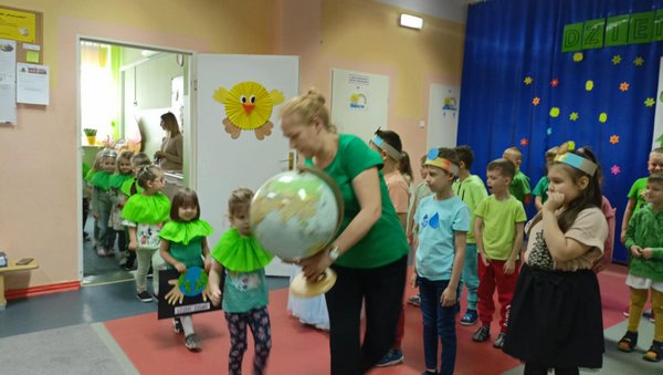 Jak co roku, także i w bieżącym w naszym przedszkolu obchodziliśmy Światowy Dzień Ziemi, promujący ochronę środowiska, szerzenie świadomości ekologicznej oraz życia z naturą. Dzieci z naszej grupy aktywnie włączyły się w obchody tego święta. 25 kwietnia zamieniły się w "leśne duszki", by wziąć udział w przedstawieniu ekologicznym wraz z kolegami z grupy 6 latków "Biedronki". Wspólnie z dziećmi z innych grup maluchy brały udział w zabawach związanych z ekologią oraz sadziły kwiaty - prezent dla Ziemi. Ten dzień z pewnością zapamiętamy na długo, bo wiemy, że Ziemia to nasz dom, o który trzeba dbać.