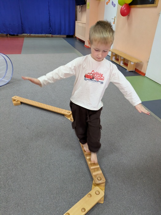 Czas ferii zimowych to czas wyjazdów. Dla tych, którzy zostali jednak na miejscu i uczęszczali do przedszkola również nie zabrakło atrakcji. Pierwszy tydzień upłynął na na zabawach rozwijających sprawność fizyczną. Dzieci miały możliwość sprawdzenia swojej równowagi na ścieżce sensorycznej czy tunelu. Nie zabrakło również rozwoju intelektualnego - rozwijały motorykę małą oraz ćwiczyły uważność. Zabawy było co nie miara.