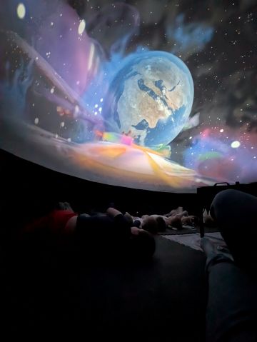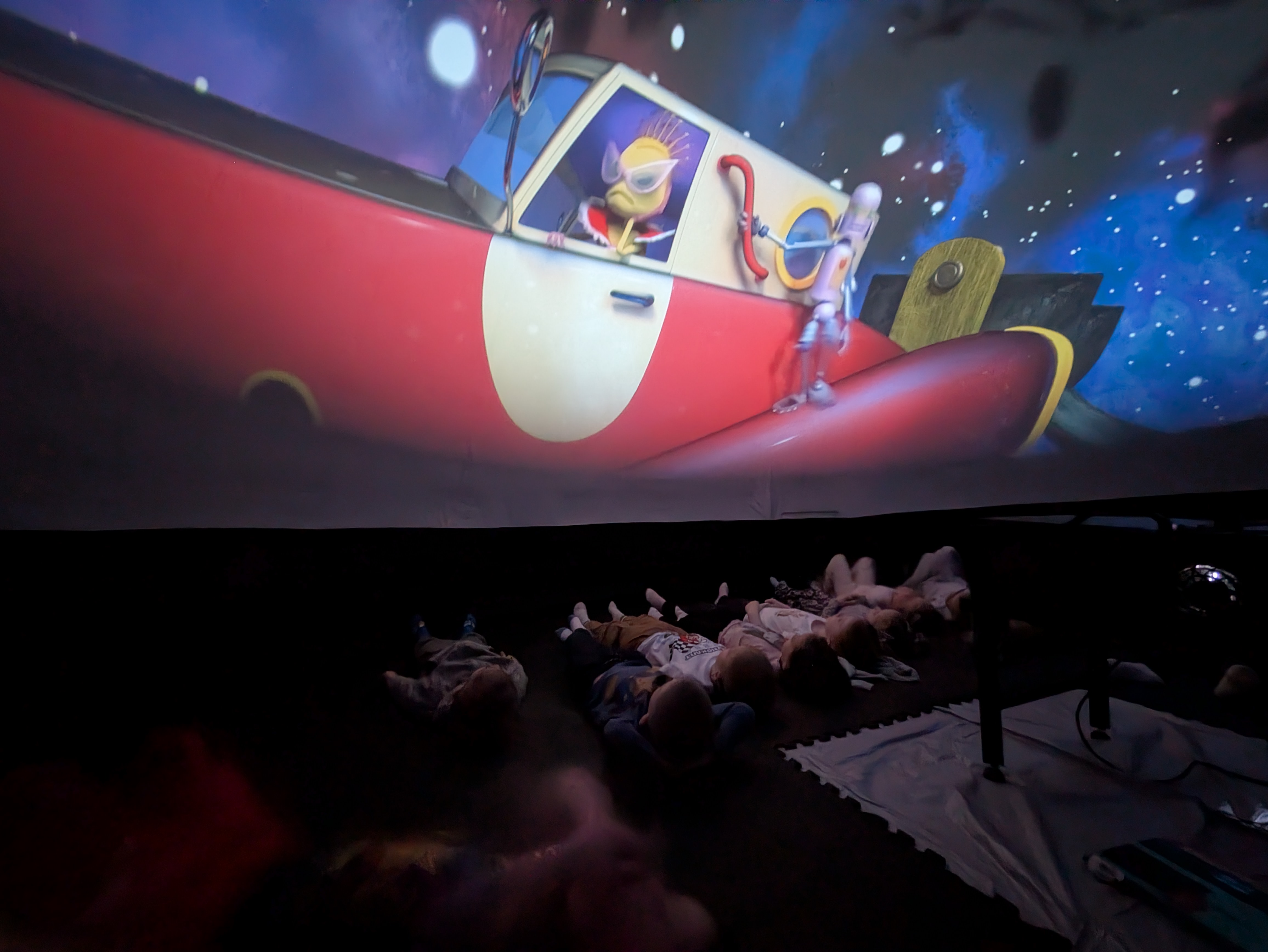 Kino sferyczne w przedszkolu to mobilne planetarium - nadmuchiwana kopuła, w której dzieci leżąc, oglądają film edukacyjny 306 °. To interaktywna nauka poprzez zabawę, angażująca zmysły i wyobraźnię, przedstawiająca kosmos, przyrodę czy naukę w realistyczny sposób. Seans w kopule to wspaniała atrakcja przybliżająca maluchom świat w przystępny sposób. Nasze przedszkolaki obejrzały film "Zula Patrol", który opowiadał o rutynowej wypraiey wykopaliskowej, gdzie Zula patrol odnajduje dowody na to, że nikczemna Deliria Delight cofnęła się w czasie na prehistoryczne ziemie po to, aby nielegalnie wyrzucić toksyczne śmieci spółki. Zula patrol musi ją odnaleźć i powstrzymać wcześniej, niż jej działania spowodują katastrofę ekologiczną. Przedszkolaki były zachwycone mobilnym planetarium i nowym sposobem zdobywania wiedzy.