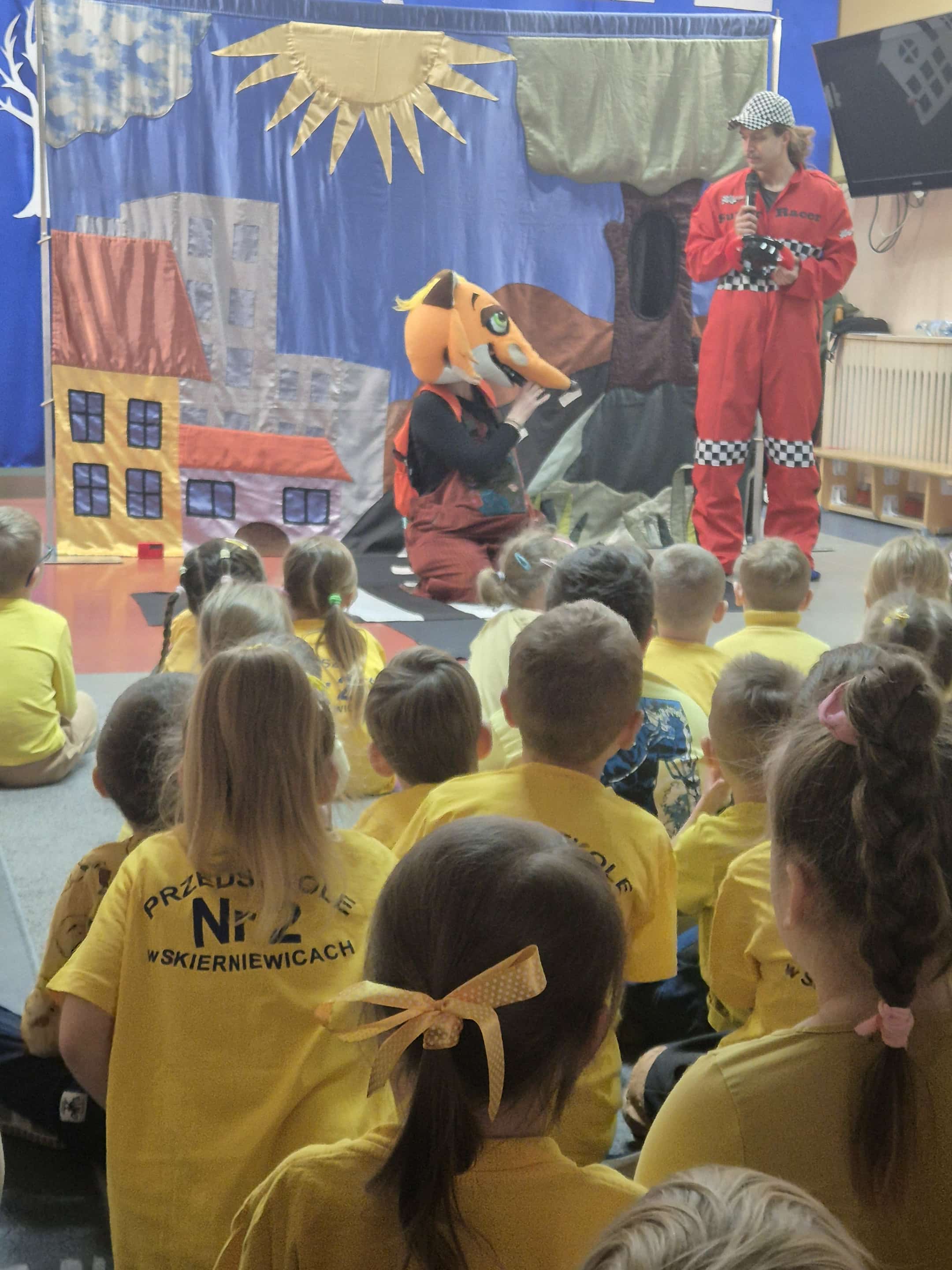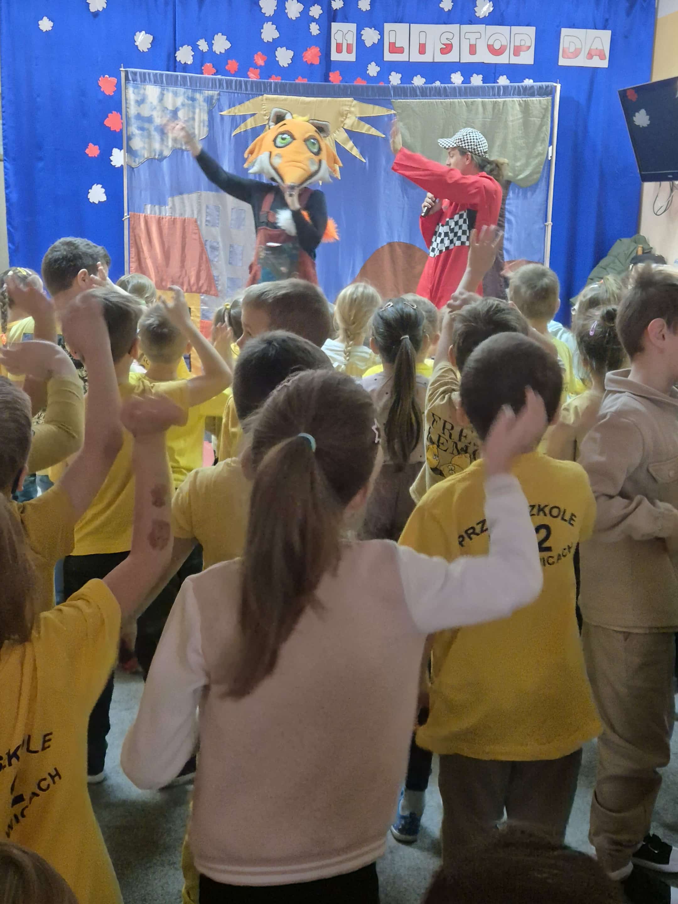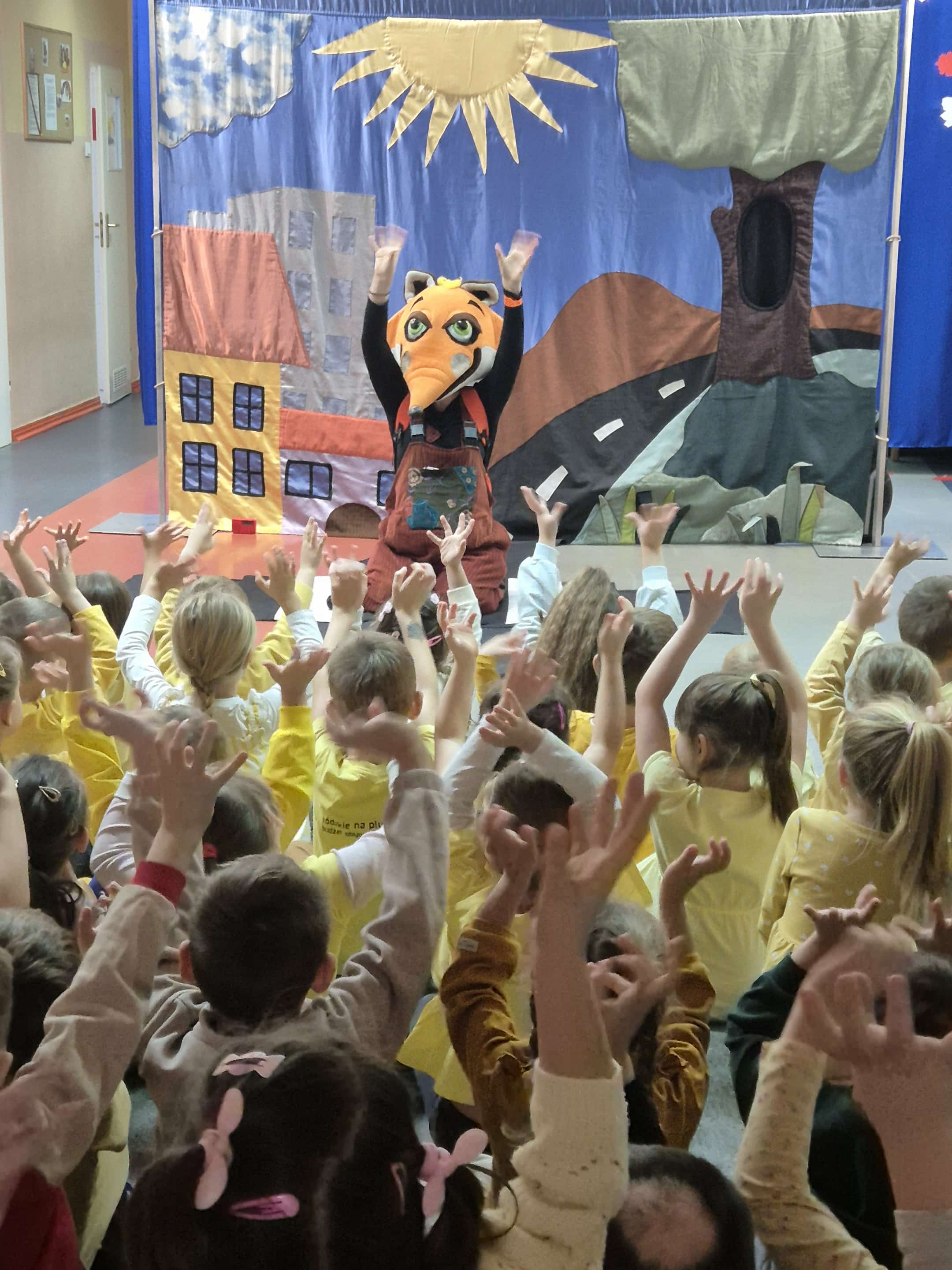 W naszym przedszkolu gościł teatrzyk Amuzado z Krakowa. Aktorzy zaprezentowali przedstawienie pt. „Lisek w wielkim mieście”. Dzieci z ogromnym zainteresowaniem śledziły losy sprytnego bohatera, który uczył się, jak bezpiecznie poruszać się w mieście. Spektakl w ciekawy i zabawny sposób przypomniał najmłodszym zasady bezpieczeństwa- m. in. jak zachować się na ulicy oraz jakie są numery alarmowe. Było dużo śmiechu, emocji i wartościowych lekcji.