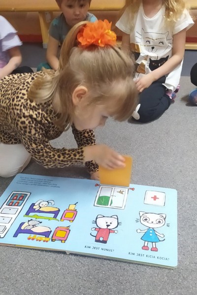 W dniach 19-23 maja 2025r. w naszej grupie miała miejsce akcja pod hasłem "Tydzień z Kicią Kocią". Był to cykl zajęć czytelniczo - plastycznych tematycznie związanych z serią książeczek A. Głowińskiej, której bohaterką jest sympatyczna Kicia Kocia. Dzieci codziennie poznawały różne przygody naszej bohaterki, wykonywały prace plastyczne, budowały domek i przedszkole, tańczyły, grały w grę planszową. Poznawały również różne zawody. Tydzień z Kicią Kocią sprawił grupie "Pszczółki" wiele radości.