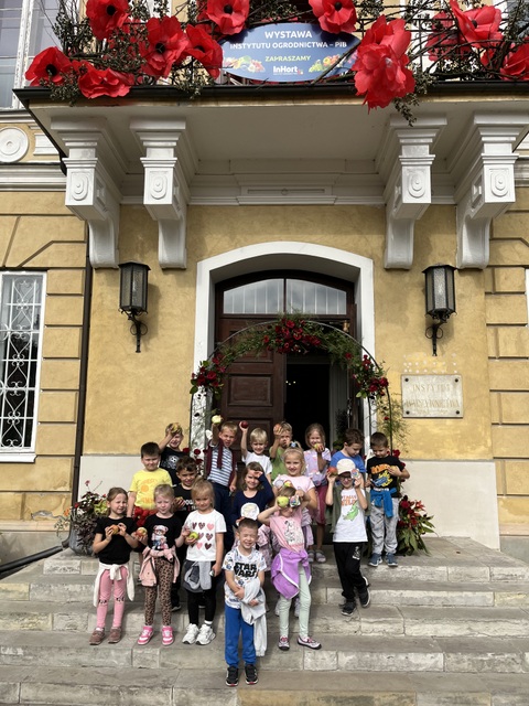 W dniu 22 września dzieci z grupy „Żabki” odwiedziły Instytut Ogrodnictwa- Państwowy Instytut Badawczy w Pałacu Prymasowskim w Skierniewicach. Przedszkolaki zwiedzały wystawę pod tytułem: „Ogrody zdrowia - co natura ma dla ciebie. Kolor ma znaczenie”.